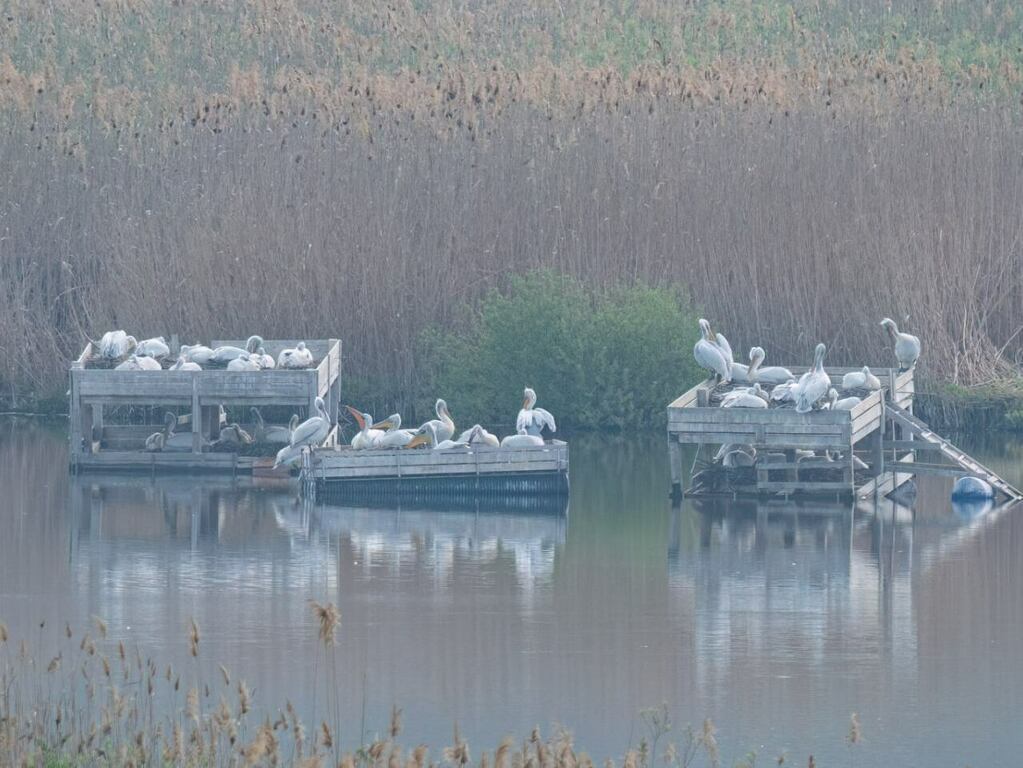 Къдроглавите пеликани в езерото Сребърна гнездят върху специално изградени платформи. Снимка Дамян Петков - БДЗП