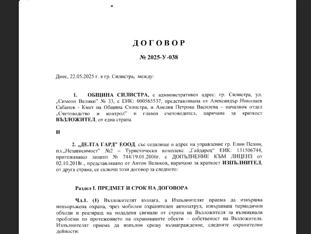 Както информира вече “Местен репортер” , през мeсец май 2025 г. кметът на общината възложи директно на фирмата по заявена от нея оферта(сумата е под прага за такъв), а не след процедура с конкурс, да изпълнява договор с предмет охрана на общинска и държавна собственост и частни имоти, с цел недопускане на нерегламентирани сметища със смесен битов, строителен и производствен отпадък.